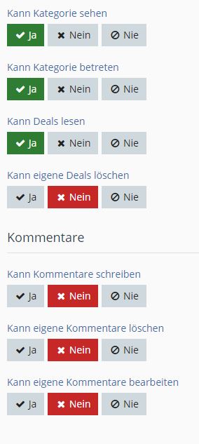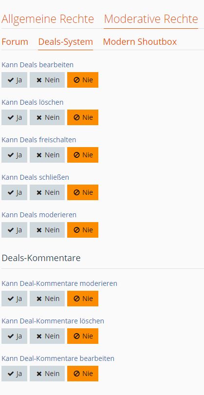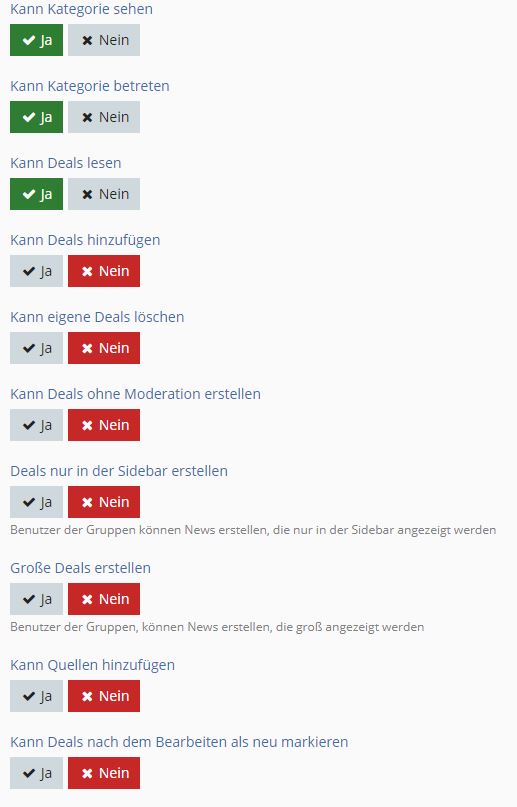 Folgende Rechte sind für das News-System gesetzt.