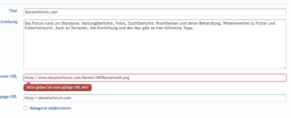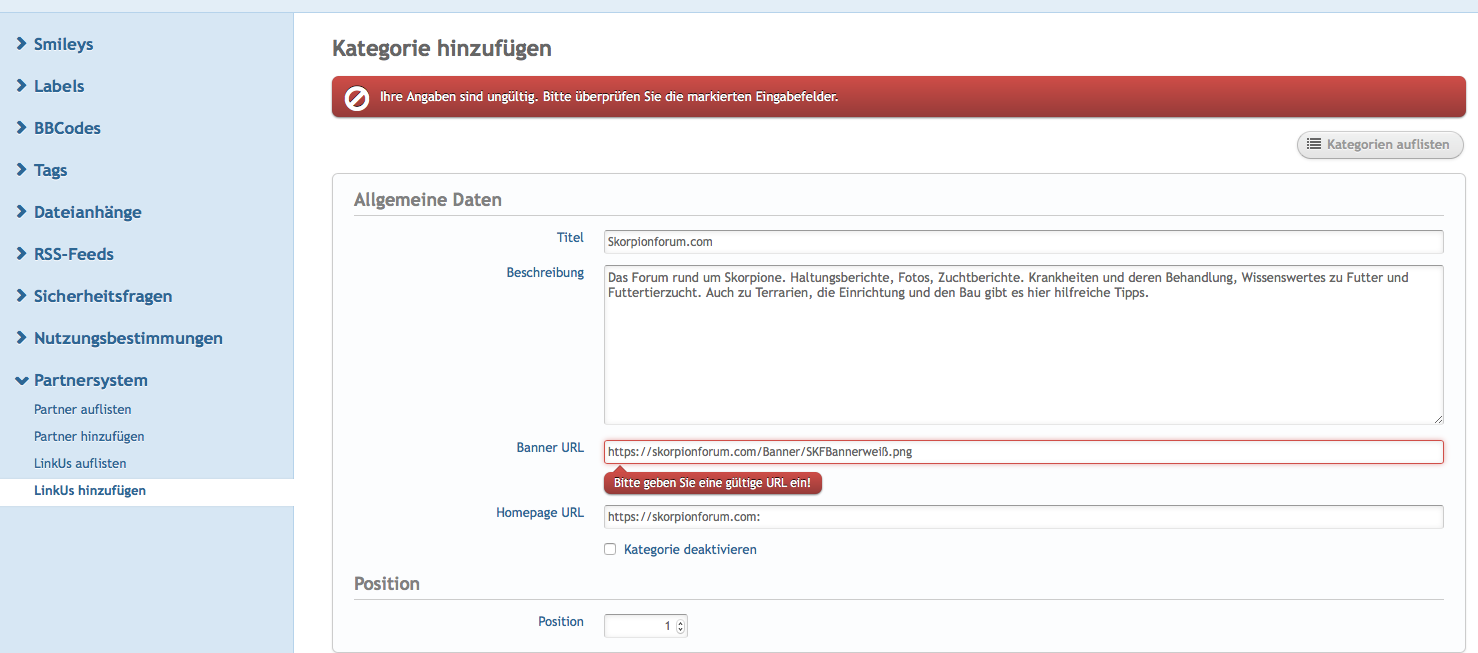Nach dem Update des Plug Ins wegen dem HTML Problem habe ich nun unter LinkUs versucht die Banner URL zu ändern da ich den Ort des Banners geändert habe. Seit dem bekomm ich immer diesen Fehler: