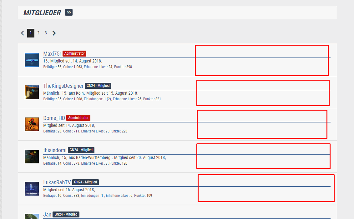 2. Wäre es irgendwie möglich, bei der Mitgliederliste 2 Benutzer nebeneinander zu machen? [Screenshot: #02]