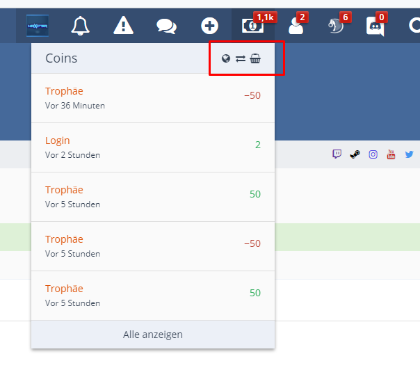 5. Bei den User Menüs wird keine weiteren Buttons angezeigt also bei Coins sind noch hier Symbole: [Screenshot: #06] beim Design sieht es aber so aus: [Screenshot: #07] da sind diese einfach weg.