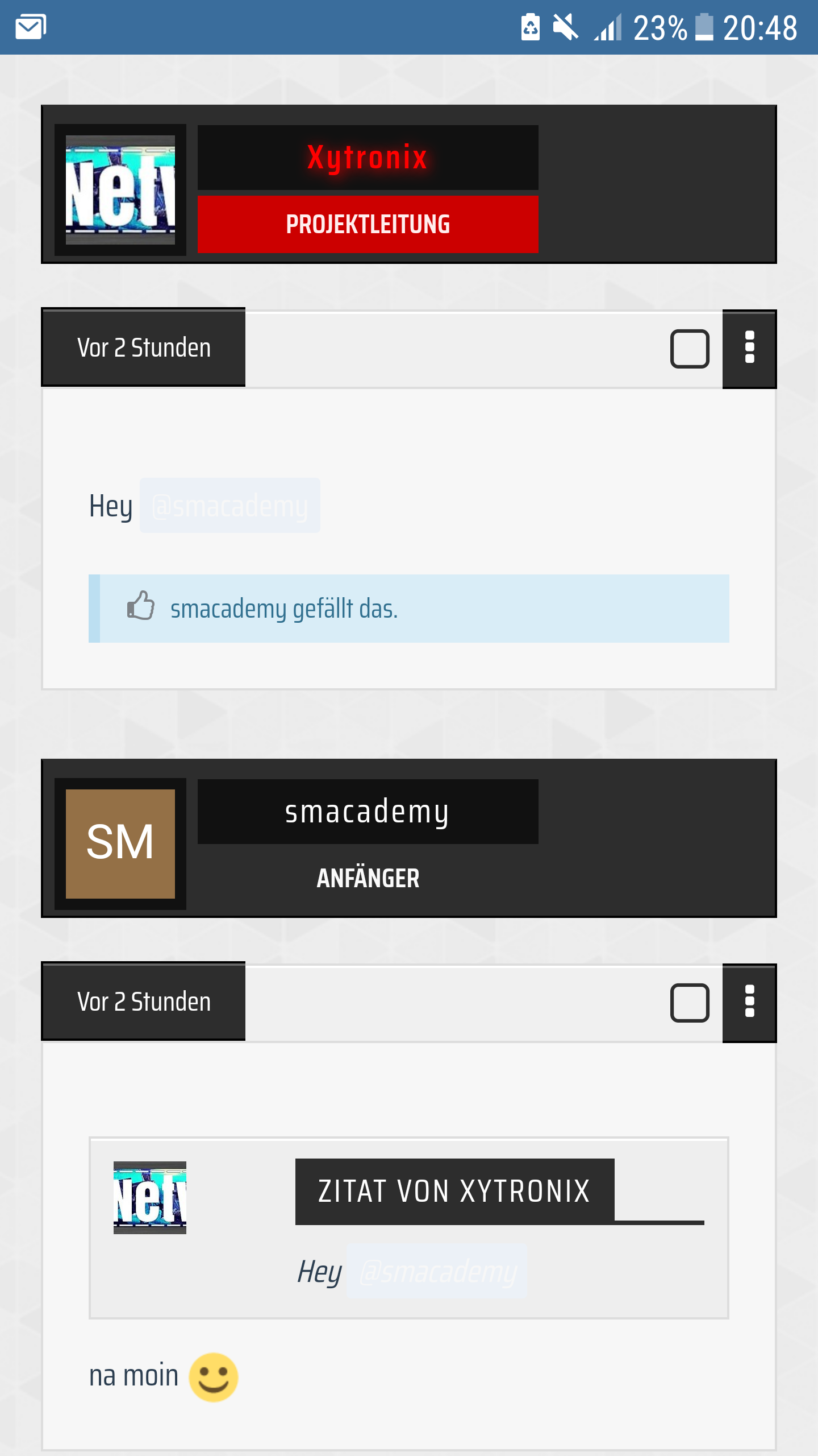 31. Dezember 2018 um 20:51 #1 Guten Tag,die @Benutzer Markierung wird nicht richtig angezeigt. Zumindest ist es aufm Handy so, sollte man aufm PC aber auch austesten.Mit freundlichen GrüßenXytronix