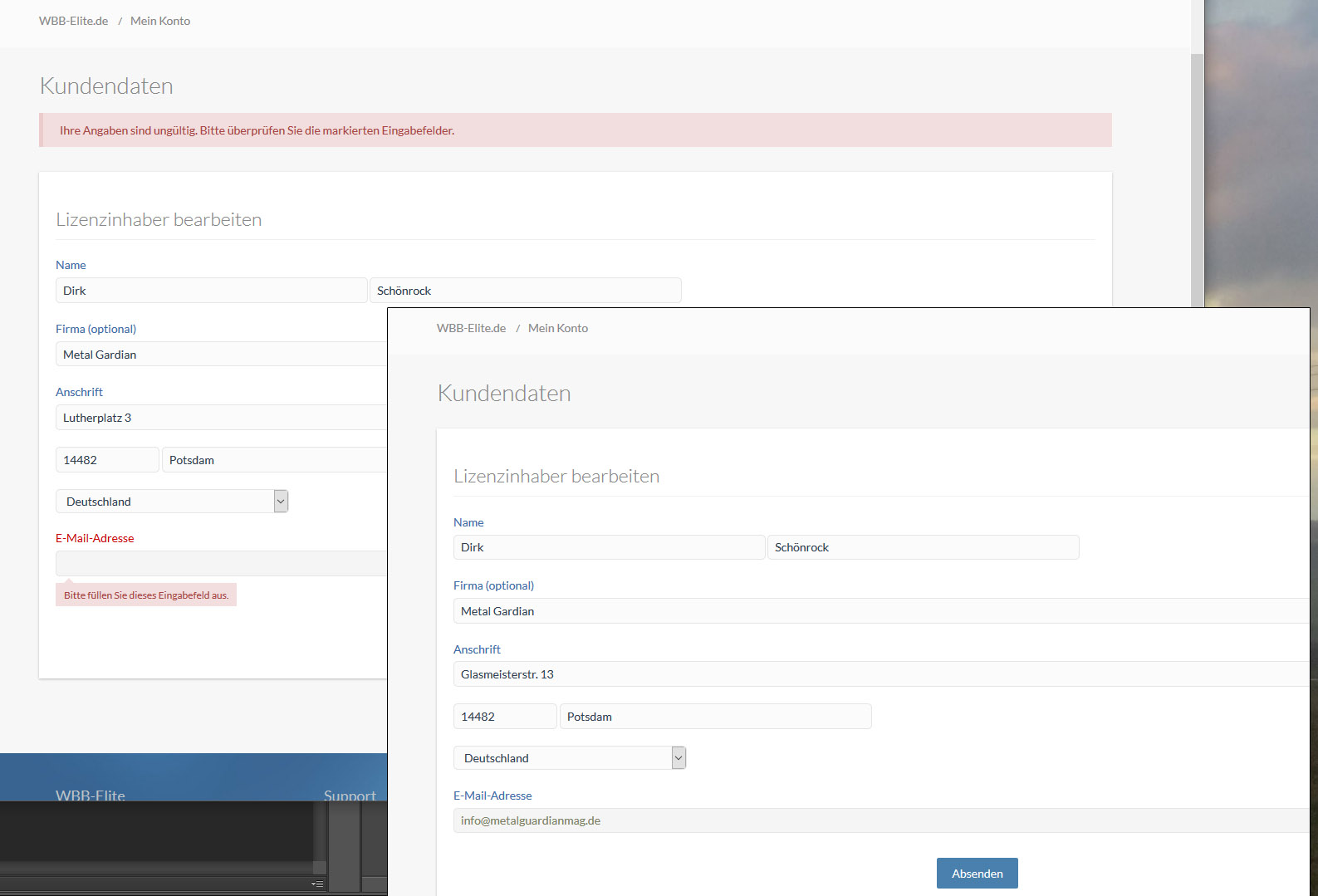 als ich ebend meine Adresse in den Kundendaten ändern wollte, ging dies leider nicht. Zwar kann ich in das Feld meine neue Anschrift eintragen, nach dem Absenden erfolgt aber die Fehlermeldung, ich solle das E-Mail Adressfeld ausfüllen, nur ist dieses während des Änderungsvorgangs ausgegraut und bereits (richtig) ausgefüllt und nicht zu bearbeiten.