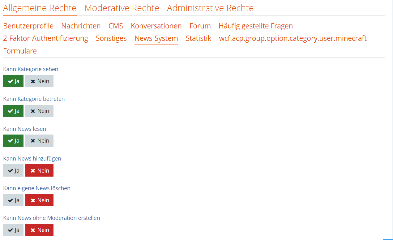 Es läuft wie folgt ab: Ein Nutzer registriert sich bei uns im Forum und kann - ohne Abschluss der Verifizierung - News über den "News hinzufügen"-Button erstellen. Nachdem ich in der Benutzergruppe "Gäste" drin war, auf "News-System" und dann auf "Absenden" geklickt habe, verschwand der Button bei Gästen. Das heißt für mich, dass ich jetzt regelmäßig prüfen muss, ob die Benutzergruppenrechte von Gästen richtig sind oder nicht. Da man dort leider keine Einstellungsmöglichkeit hat, definieren zu können, ob Gäste News erstellen dürfen oder nicht, muss ich mich scheinbar auf die fehlerhafte Synchronisierung verlassen, was uncool ist.