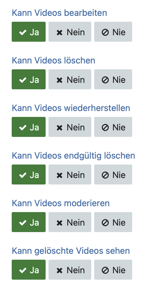 Dafür benötigst Du das Moderative Recht -> Kann Videos endgültig löschen in der Benutzergruppe, die Dir zugewiesen ist.