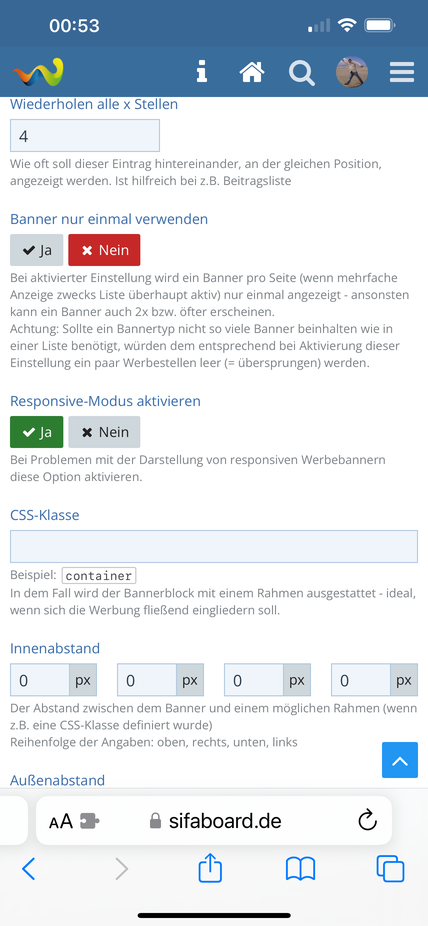 Ein Problem gibt es allerdings bei der Mobilen ansicht. Ich habe einen Banner zwischen den Kat. Und Foren integriert allesfings wir diese in der Mobilen Anzeige sehr Groß gezeigt, siehe anzeige.