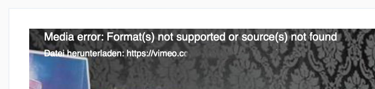 Hier mal ein neues Problem. Meine Videos von Vimeo sind mit Ja (Keine Videoplattform verwenden) noch eingestellt. Alle Videos laufen aber es kommt eine Fehlermeldung im Fehler Log.