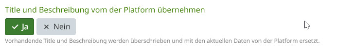 Richtig: Titel und Beschreibung von der Plattform übernehmen -