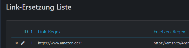 Link ersetzen funktioniert mit der Haupt URL, also https://www.amazon.de/ wird zu https://amzn.to/meineID verlinkt.