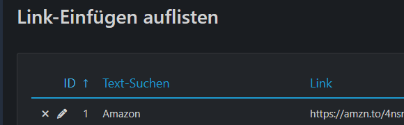 Text ersetzen funktioniert, wenn jemand zB amazon schreibt, dann wird automatisch zu https://amzn.to/meineID verlinkt.