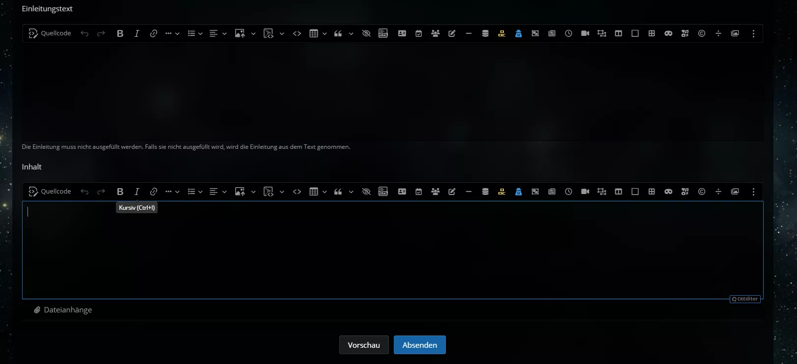 14. November 2025 um 18:28 #1 Guten Abend,mir ist eben aufgefallen dass beim erstellen einer News die Auswahl für smileys nicht mehr angezeigt wird, hier ein Beispiel: Und ich kann mir irgendwie nicht erklären wieso... hätte da evtl. mal jemand Zeit sich das anzugucken?MfG