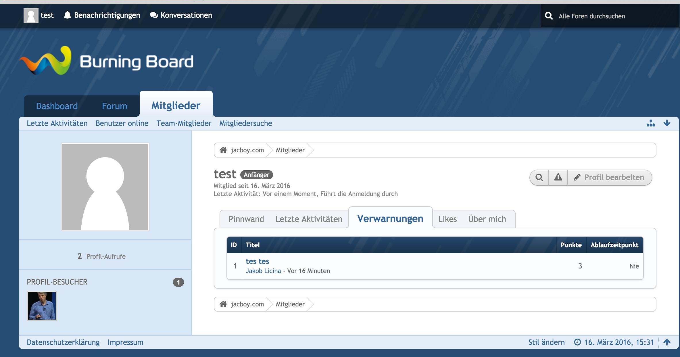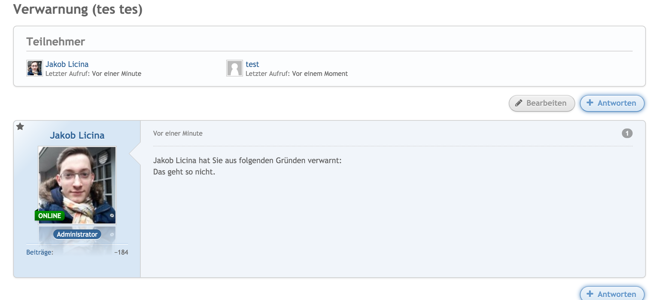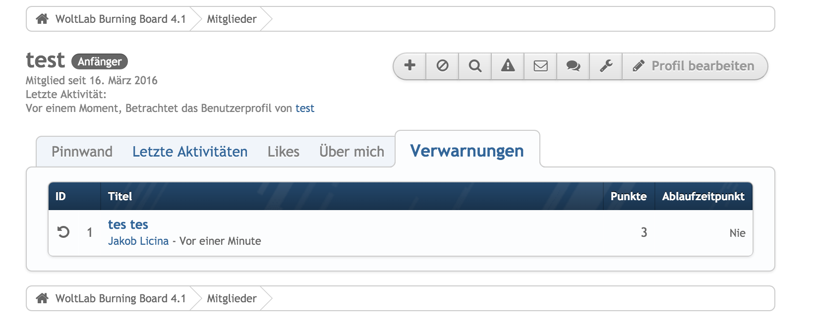 eine Idee für ein neues Plugin: "normale" Benutzer können auch ihre eigenen Verwarnungen und Sanktionen einsehen, wie im WBB 3 über einen Reiter im Benutzerprofil. Bis auf vorherige Konversationen hat ein Benutzer ja keine Chance nachzusehen, welche Verwarnungen er erhalten hat und welche Sanktionen ggf. aktiv sind.
