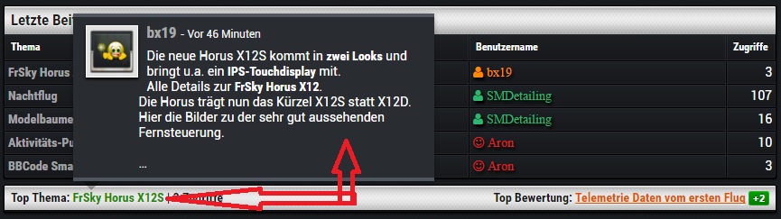 Anders verhält es sich bei Mouse Over unter Top Bewertung, hier blobt der gleiche Inhalt auf wie bei Top Thema und das kann ja nicht richtig sein weil das 2 verscheidene Themen sind.![]()
