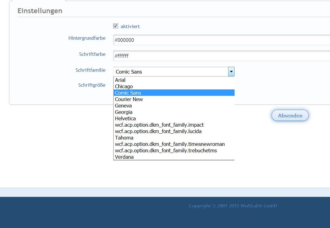 Im Moment muss man noch die Schriften von Hand eintragen, ich würde aber gerne das zur Verfügung stellen, was eh schon an Schriften installiert ist und auf diese Schriftarten beschränken, damit es zu keinen Fehlern kommt.