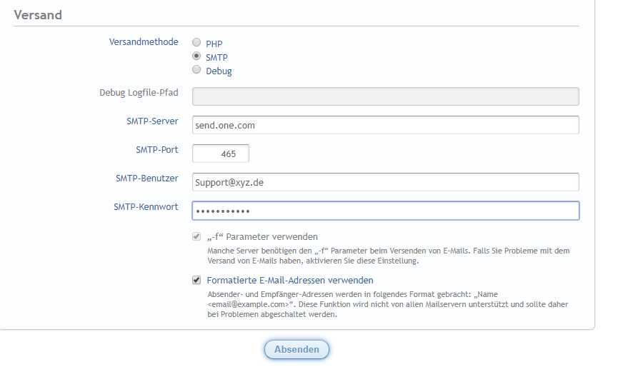 Also wenn ich die Angaben mache so wie ich das vom One.com Support mitgeteilt bekomme bekomme ich ein Fehlercode die ich im ACP eingeben kann da steht das hier: