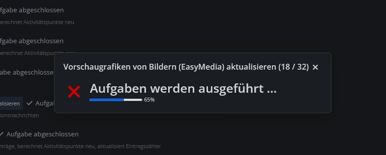 nach dem mich Mitglieder darauf hingewiesen haben, dass sie trotz angelegten Rechten, keine Rechte haben Bilder in Alben einzusetzen, habe ich die Aktualisierung angestoßen, die easy.media Bilder zu aktualisieren und es bleibt stehen: