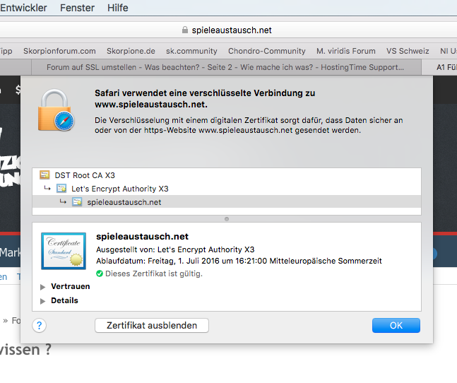 Google Chrome = Sichere VerbindungAlso irgendwas spinnt da doch... oder ist das Zertifikat einfach nur für manche Browser "verbuggt"?