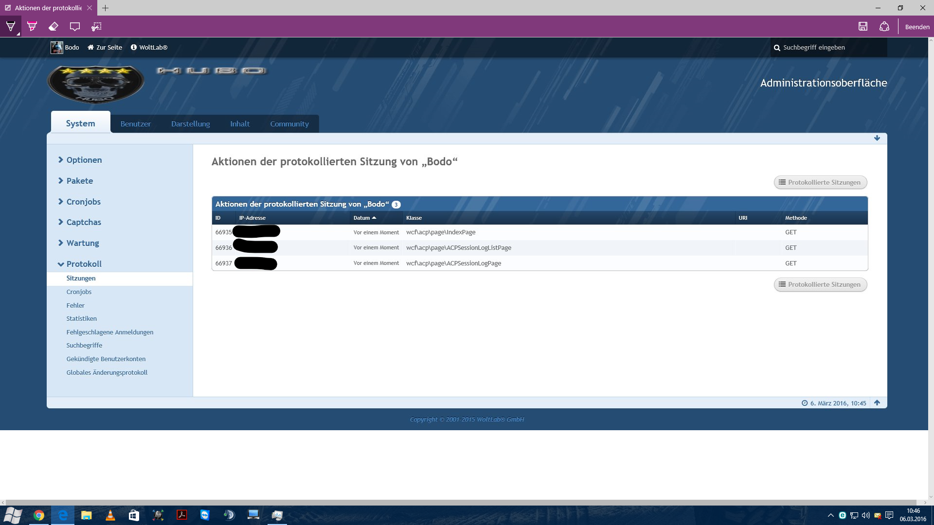 also jede Änderung im ACP soll protokolliert werden? Wenn ich jetzt sagen wir dich hochstufe auf Admin dann soll da stehen, Matze hat Bodo zum Admin ernannt oder so?