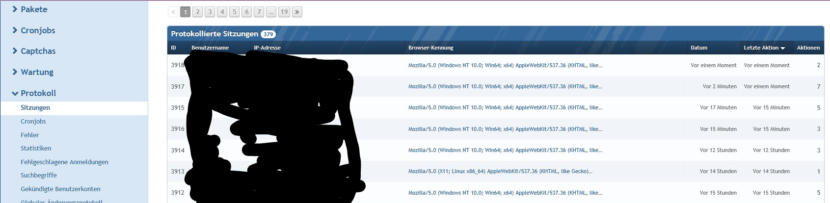 Nein wer was im Admin CP verändert hat von dem Team das Zugang zum Admin CP hat damit man nachvollziehen kann was jemand dort verändert hat. Unter System==> Protokoll==>Sitzungen==> Protokollierten Sitzungen.Und dort