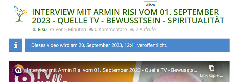 Heute machte ich ein Test, mit der verzögerten Veröffentlichung. Also ein Video mit verzögerter Veröffentlichung erstellt, anschliessend per Moderation freigeschaltet. Das Video ist zwar freigeschaltet, doch ist der Hinweis mit dem Veröffentlichungsdatum noch da. Siehe https://www.spirit.jetzt/mediathek/vide…in-spiritualit/