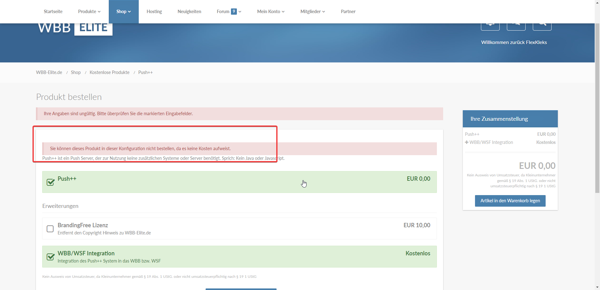 Sie können dieses Produkt in dieser Konfiguration nicht bestellen, da es keine Kosten aufweist.