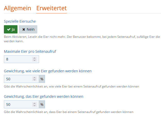 Ich überlege, in diesem Jahr die spezielle Eiersuche zu aktivieren, sodass die Eier nicht mehr leveln, sondern zufällig angezeigt werden.