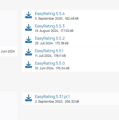 Im Gegensatz zur Version 5.3.1 pl 1 von EasyRating sind keine zusätzlichen Module erforderlich. Alles ist in einem einzigen Plugin enthalten, was die Nutzung und Verwaltung deutlich vereinfacht.