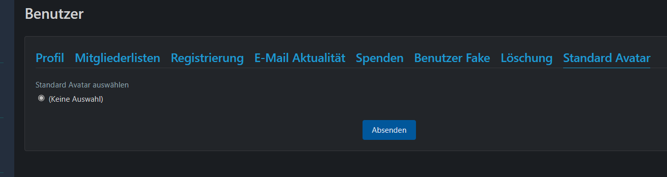 unter Benutzer / Standard Avatare ... habe ich auch keine mögliche AuswahlBitte um Hilfe