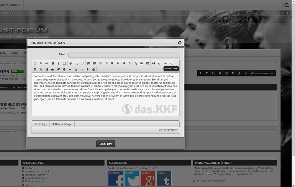 Hier seht ihr, was ich meine. Beim benutzen des Browser-Scrollbalkens bewegt sich ausschließlich der Hintergrund, beim betätigen des Scrollbalkens im Fenster, ausschließlich der Text. Der Buttom verschwindet. Ich habe es so gemacht, dass ich in das Moderationsfenster immer mehr Text eingeladen habe - je mehr Text, umso mehr "wandert" der "Speicher-Buttom" nach unten. Lösung wäre ganz einfach: Fenster frei bewegbar... geht aber nicht.