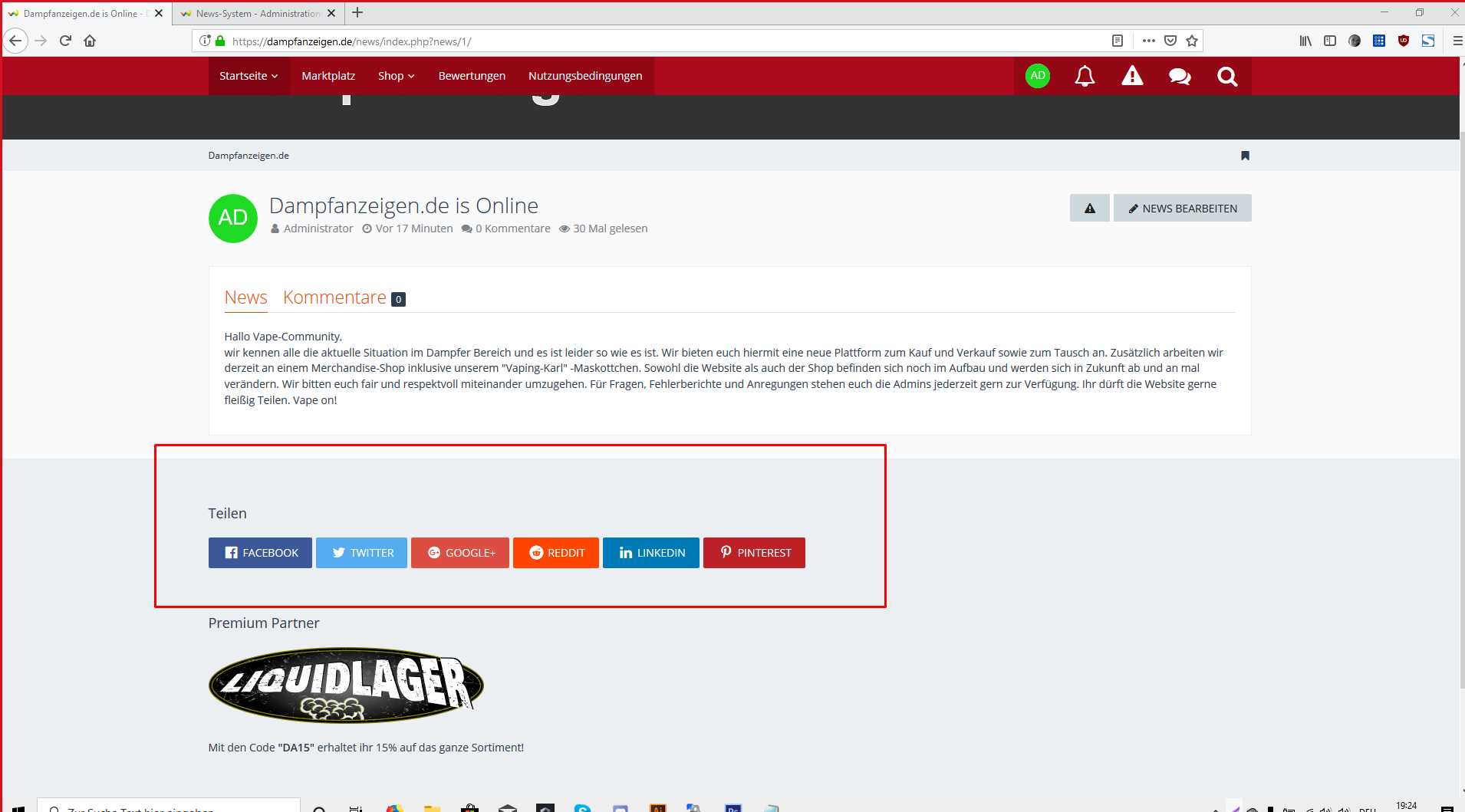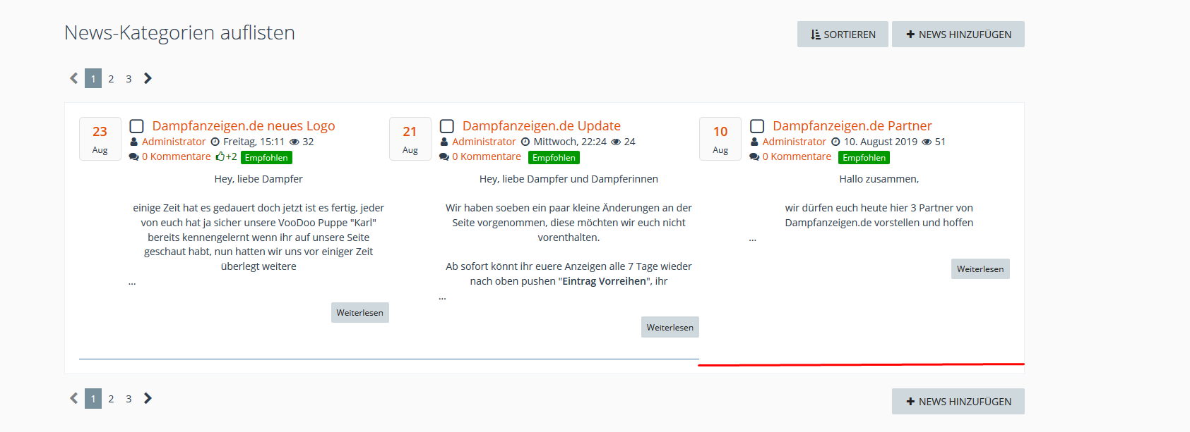 So sieht es auf der News Seite aus