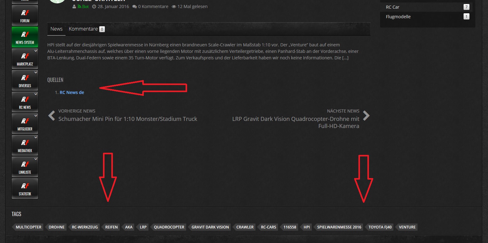 Klicke auf einen Tag im News-System öffnet sich eine andere Seite mit News und da sehe ich zwei Boxen an der Linken seite was mir überhaupt nicht gefällt.