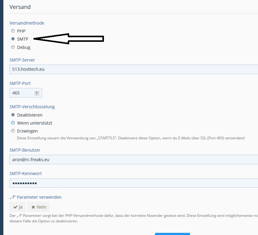 SMTP-Verschlüsselung -> Wenn unterstützt