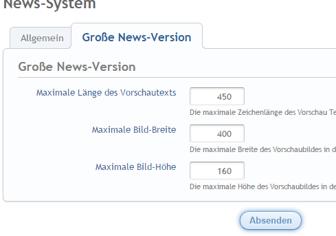 seit wenigen Tagen wird die Bildgröße in der "Große News" Version nicht mehr so angenommen wie ich sie im ACP eingestellt habe. Im ACP steht 400 px breit und 160 px hoch. Klappte bislang immer bestens, aber jetzt nicht mehr.