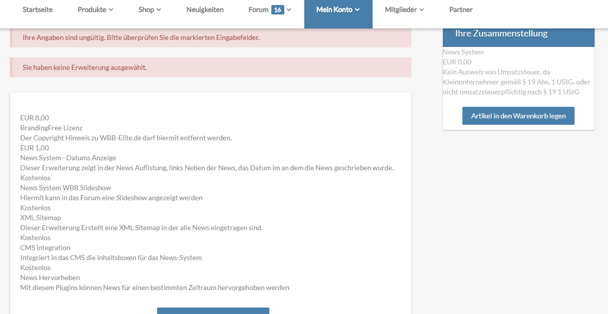 ich wollte das Newssystem vom 4.1er Forum auf die neue Suite updaten. Leider klappt beim Bestellvorgang was nicht. Ich soll was anklicken, es gibt aber leider nichts zum anklicken. Siehe Screen. Es werden auch keine markierten Felder angezeigt...noch gibt es irgendein Feld was ich anklicken könnte.