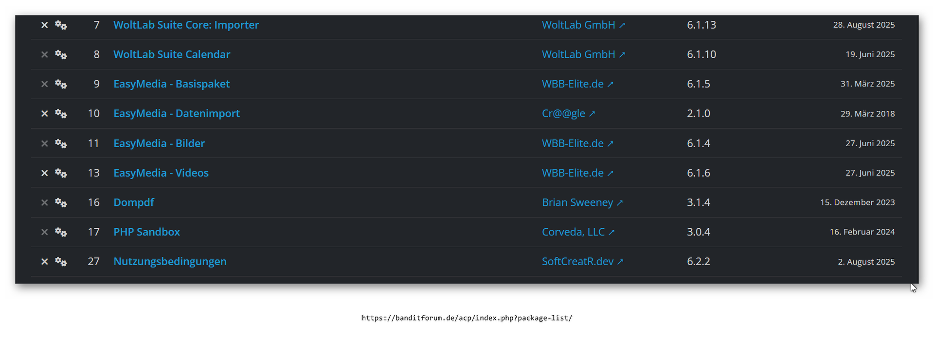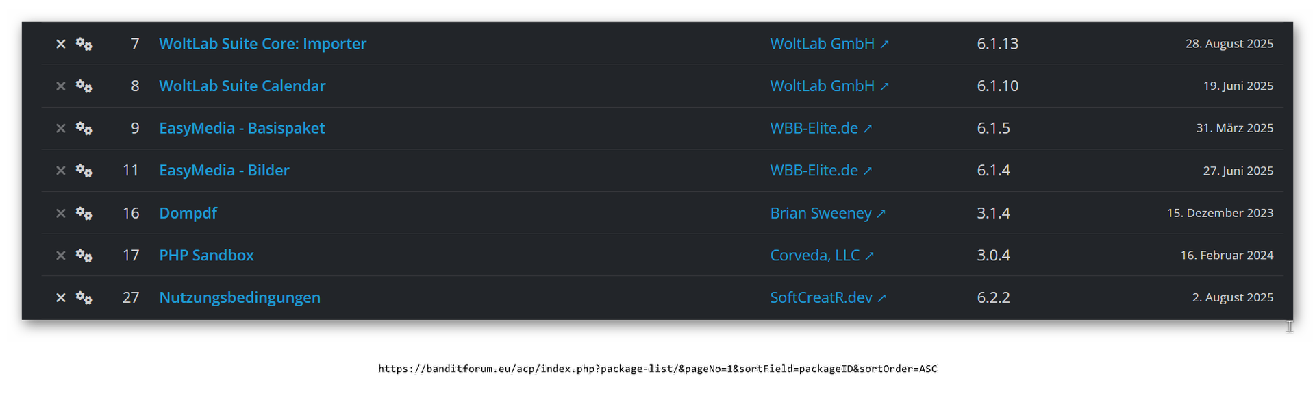 Ich habe das Forum zu Testzwecken gespiegelt. Auf dem Aktiven sieht es in der Paketliste so aus: