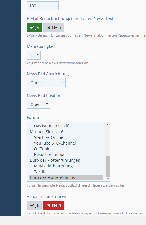 Ich hab erwartet das die Einstellung in welches Forum gepostet wird beim anlegen der News-Kategorien festgelegt wird bzw. werden muss.