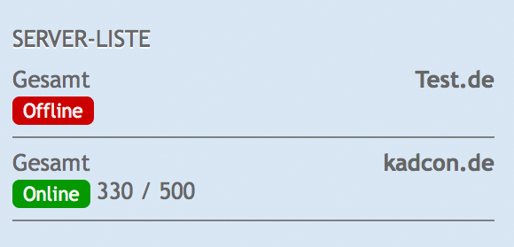 Die Server Liste kann in der Seitenleiste als Dashboard Box auf fast jeder Seite angezeigt werden und zeigt dann den Status der Server an.