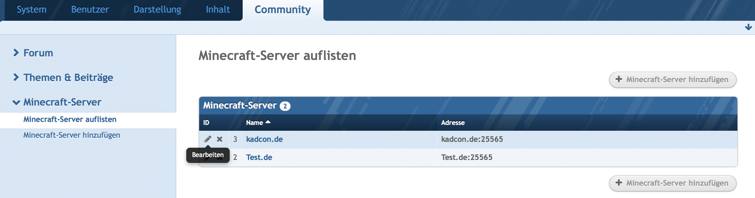 Diese Plugin fügt eine Minecraft Server Liste hinzu.