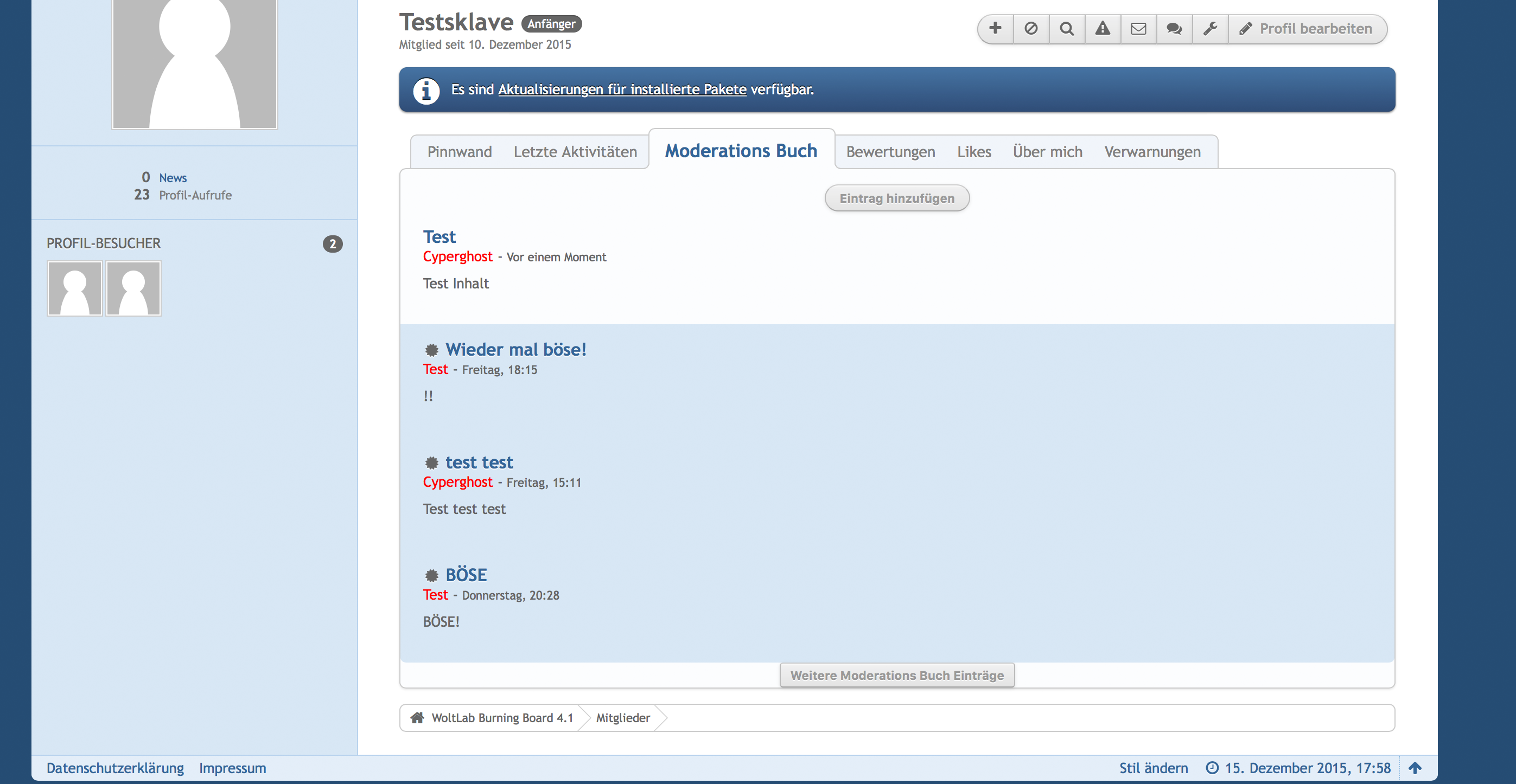 Die Verwarnungen die vom System erstellte wurden können bearbeite werden aber nicht gelöscht werden von einem Moderator oder Administrator.