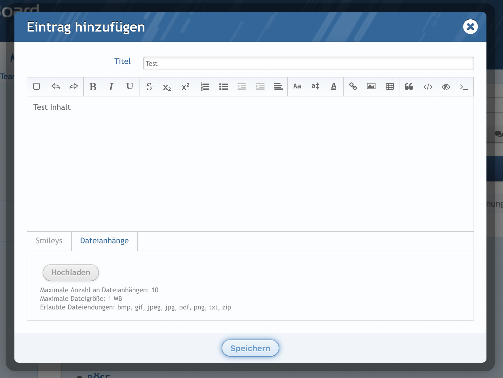 Sämtliche BB-Codes und Smileys sind in den Texten erlaubt und werden angezeigt.