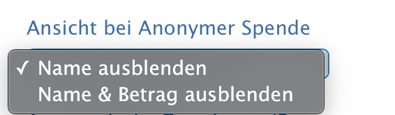 - Es kann nun eingestellt werden, ob nur der Benutzername oder Benutzername und Betrag bei einer anonymen Spende ausgeblendet wird.