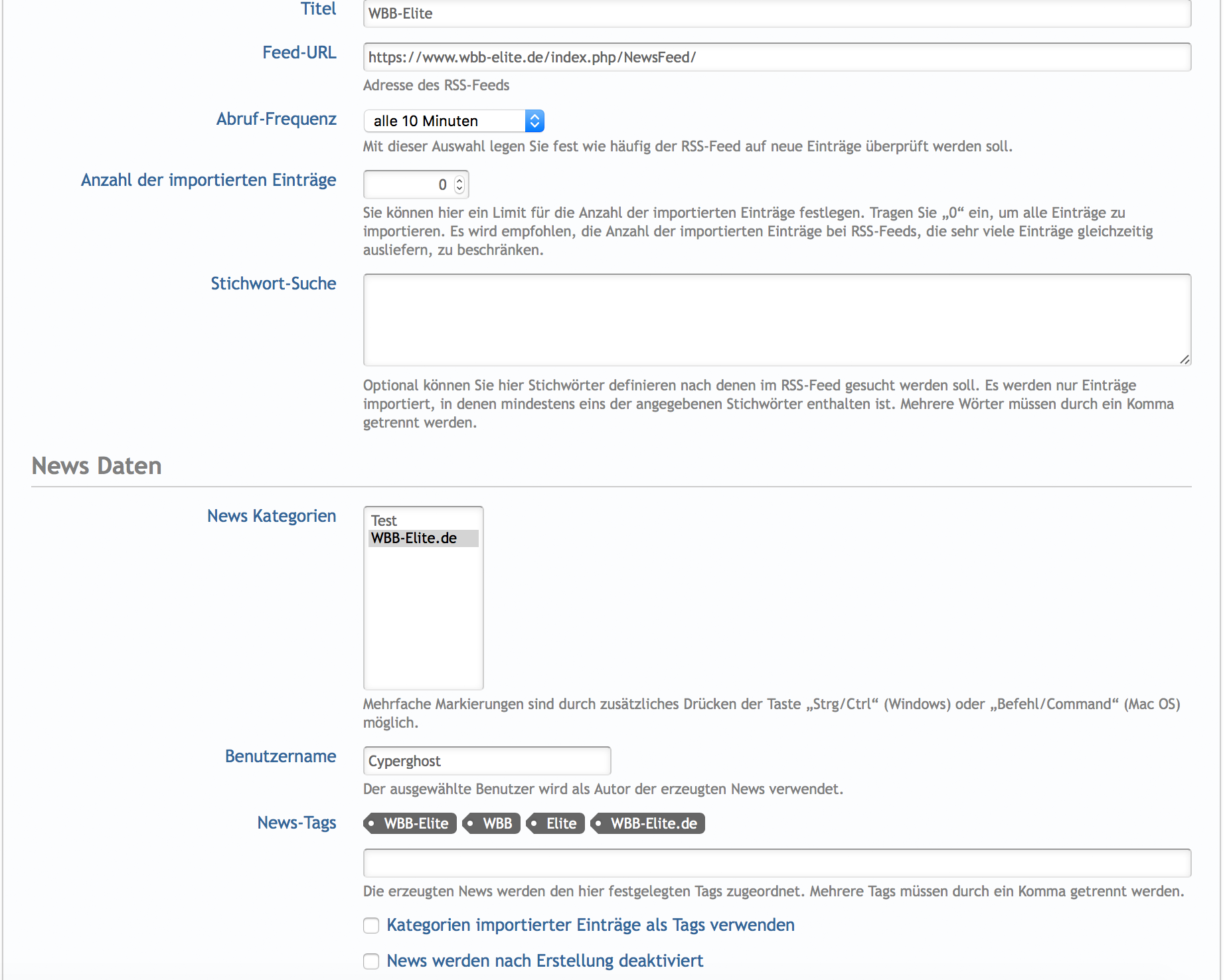 - Beim Bearbeiten von News, eine Checkbox um die News als neu zu markieren