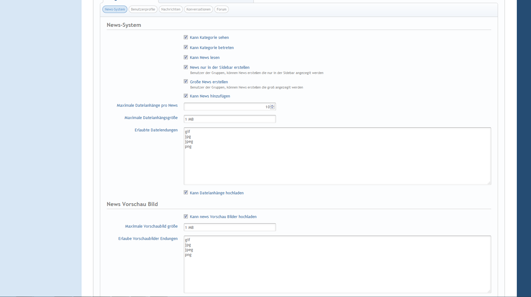Das System gibt jedem Benutzer die Rechte die er für das News System braucht. Dank dieser Rechtvergabe können Benutzer und Benutzergruppen unterschiedliche Rechte bekommen.