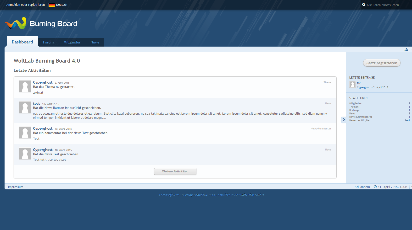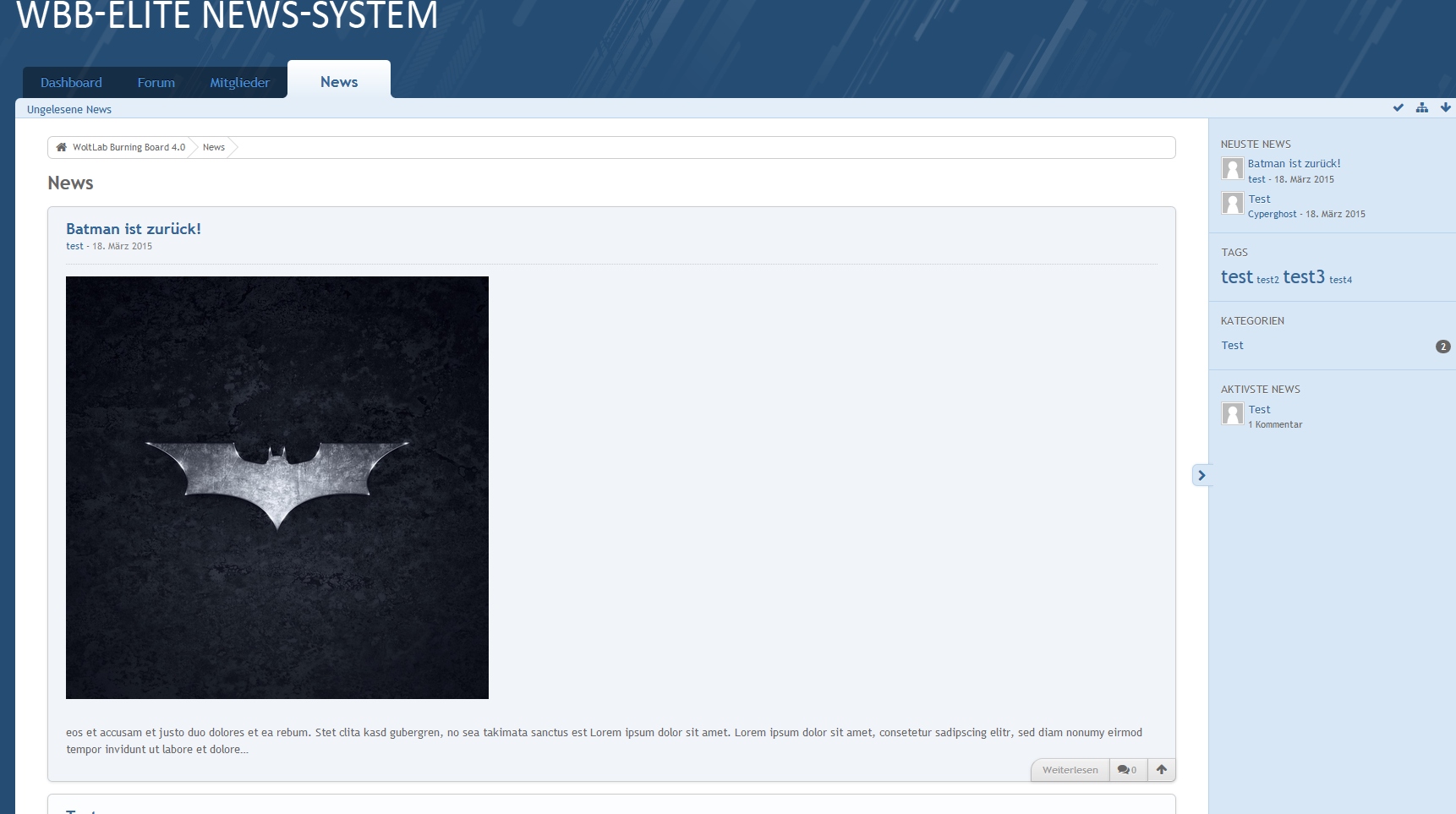 - Oder auch große News wie zum Beispiel mit großen Bildern und Texten