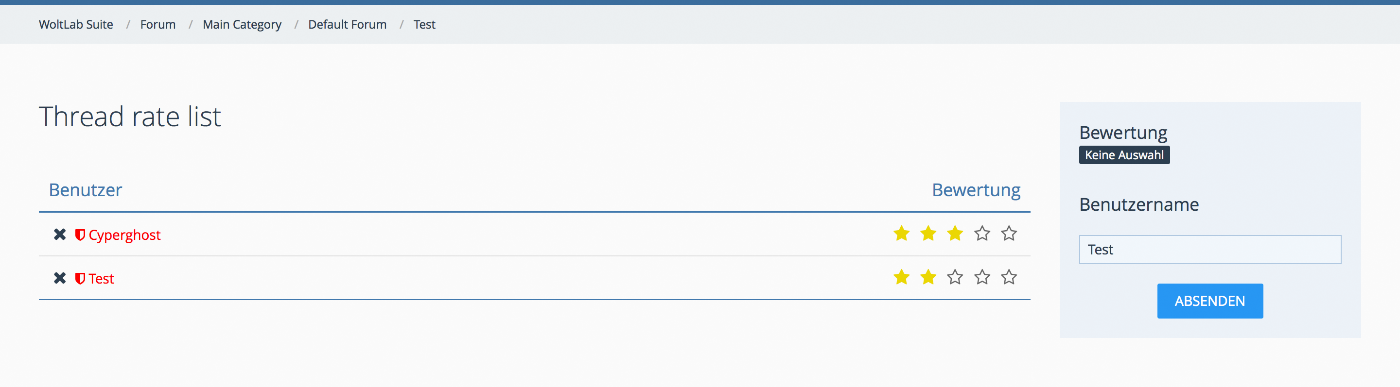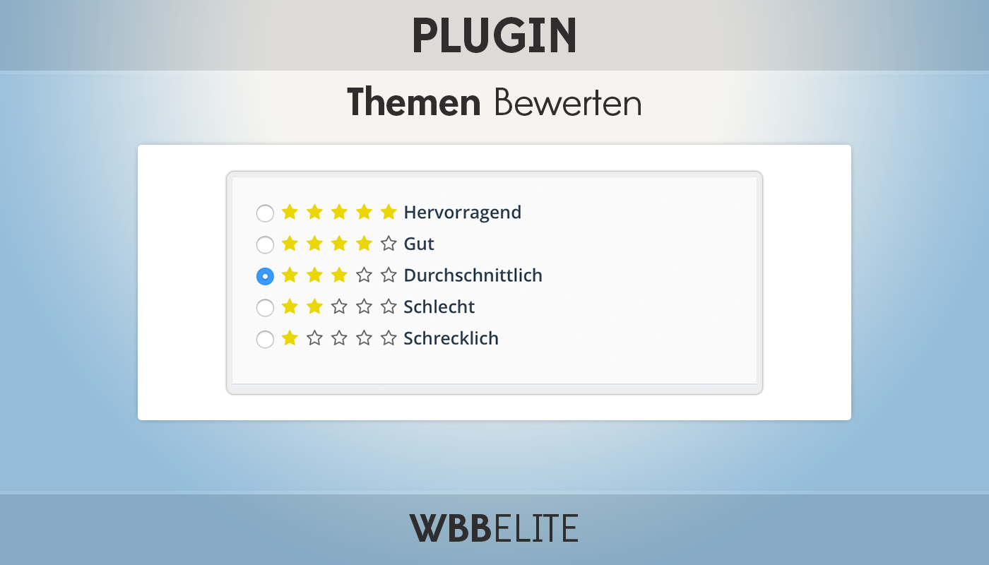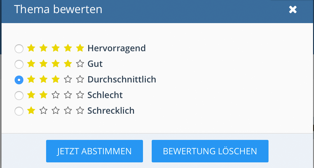 Das Produkt Themen-Bewertung 3.0 gibt den Benutzern nun auch im WSF 5.0+ die Möglichkeit Themen mit Sternen zu bewerten. Zusätzlich erhalten User für das Bewerten und das Bekommen von Bewertungen Aktivitätspunkte.