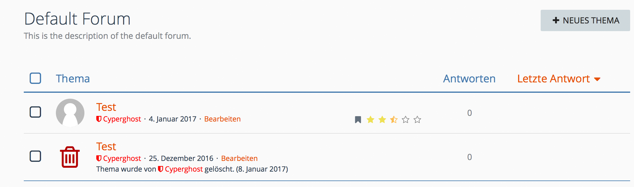 - Einstellen, ob Benutzer eigene Themen bewerten dürfen