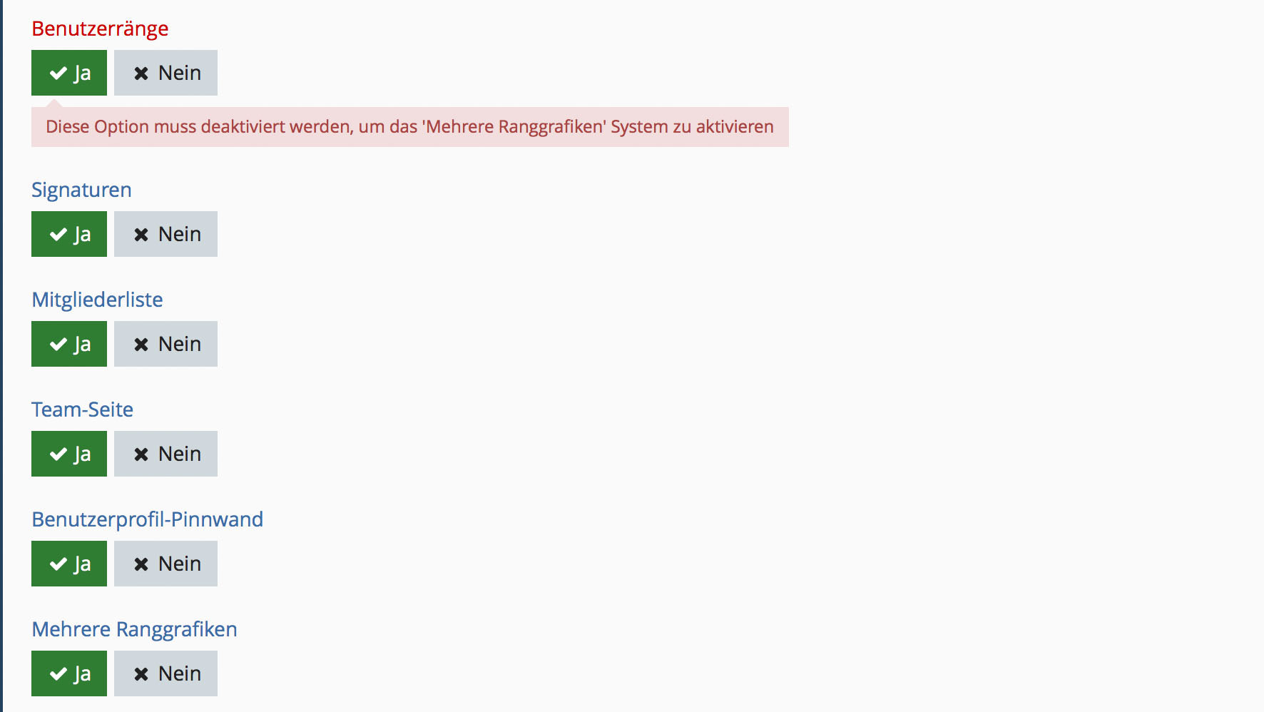 Die Option "Benutzerränge" muss deaktiviert werden, wird mit der Installation automatisch gemacht.