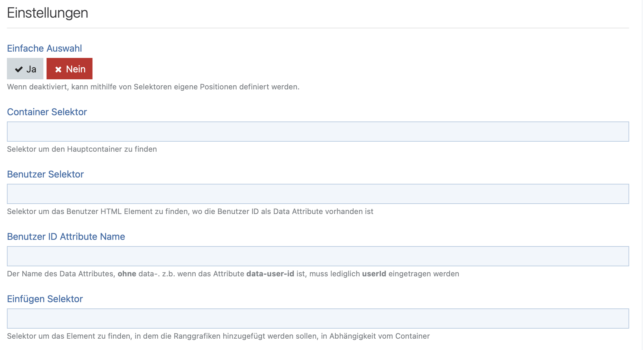 - Individuelle Konfigurierbare Felder an denen die Ranggrafiken hinzugefügt werden können