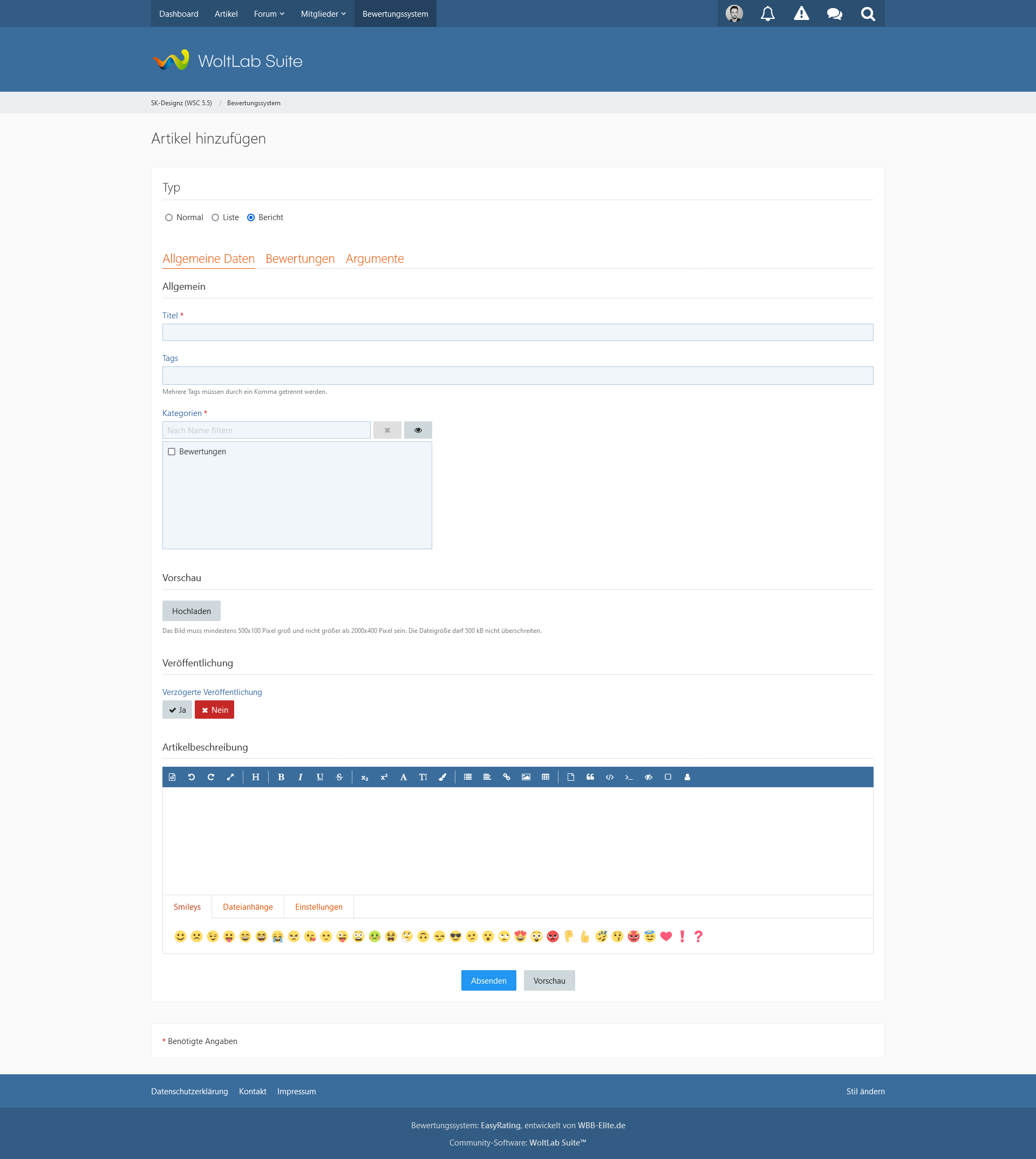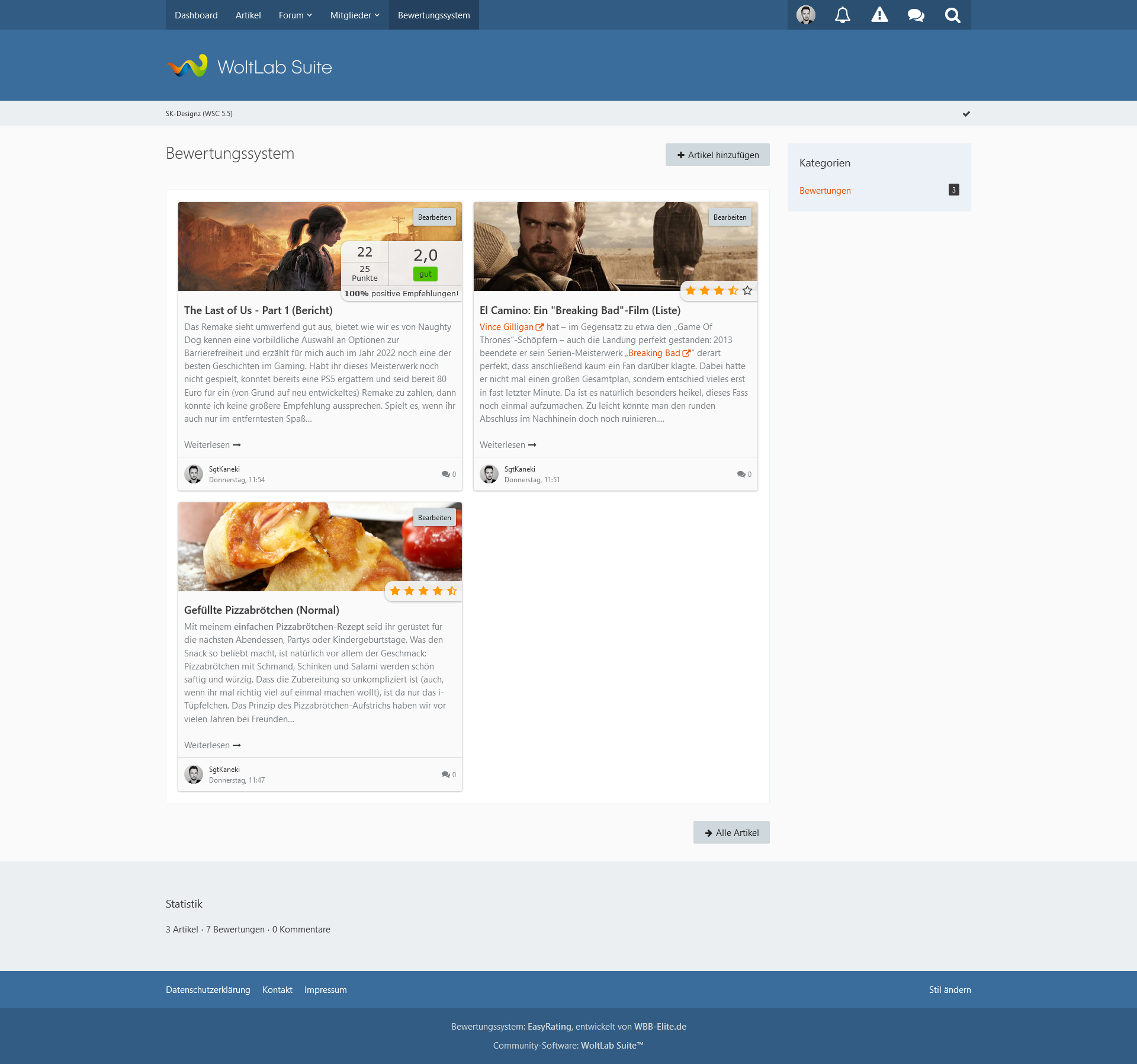 Wichtig: EasyRating erweitert nicht die bestehenden Artikel der WoltLab Suite Core um Bewertungsfunktionen, sondern bietet eigenständige, neue Möglichkeiten.